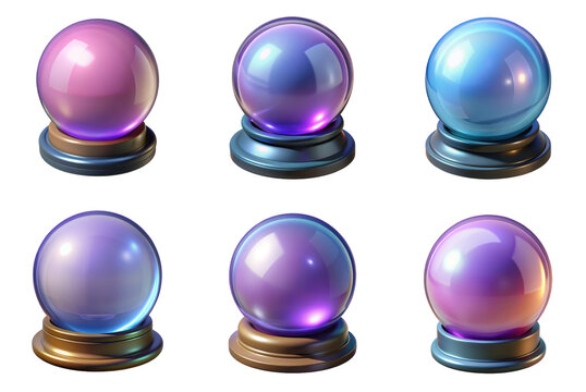 PNG crystal ball 3d collection, in cartoon style minimal on transparent, white background, isolate