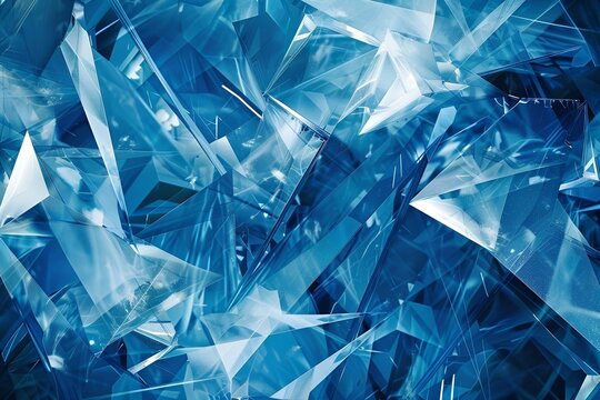Dynamic abstract polygonal design with deep and light blue tones, creating a layered, crystalline effect with sharp edges and smooth transitions