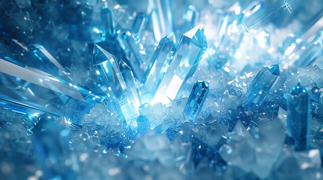 Sparkling kaleidoscope of icy blue crystal shards, glowing with inner light and geometric beauty