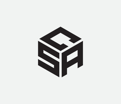 Modern Geometric Cube Monogram Logo Design, "CSA" hexagon cubic alphabet letter vector geometric font Logo for design. Initial three letters template logo. Vector Illustration