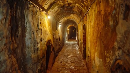 tunnel background and business concept. tunnel with old brick. the end of tunnel and concept business successfully. mystery tunnel or mystery way. tunnel damaged and waited for repair.