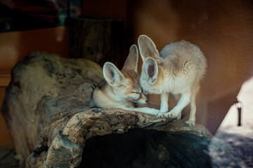 Two fennec foxes cuddling