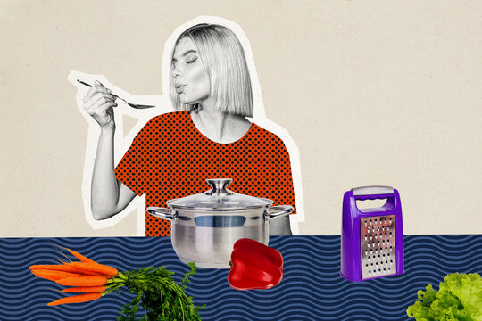 Modern chickpea soup with rosemary and lemon zest, top view on gray surface, elegant minimalist food design for editorial, restaurant, or culinary advertising.