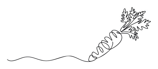 Abstract continuous line drawing of a vibrant carrot with leafy greens, suitable for food related themes, health consciousness campaigns, or modern culinary branding
