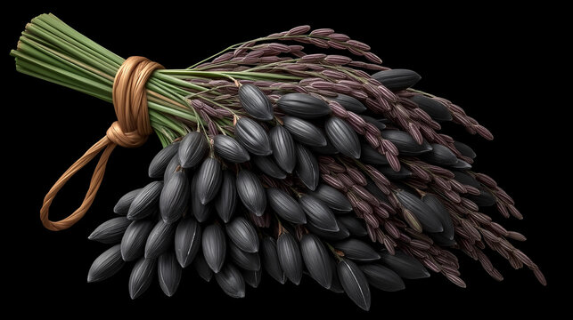 Exquisite Black Rice Bundle A close-up shot captures the beauty of a bundle of black rice, its dark grains elegantly tied, inviting appreciation for nature's bounty and culinary delight.