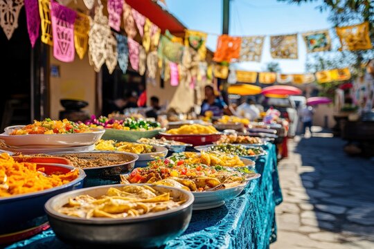 Abundant Mexican Feast with Tacos, Guacamole, Salsa, and nachos. Cinco de Mayo Celebration, traditional Latin-American cuisine