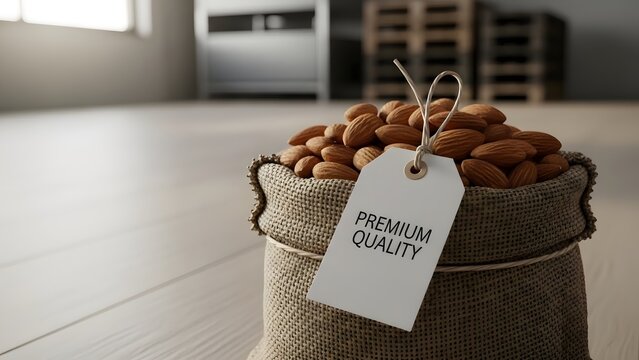 Premium Quality Almonds Packed in a Burlap Sack with a Quality Tag, Ready for Consumption and Culinary Use