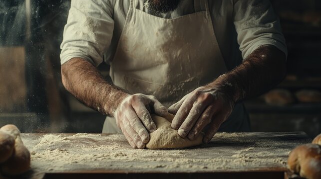 Cuisine course, a senior male chef in cook uniform teaches young cooking class students to prepare ingredients and pastry dough for bakery foods and fruit pies in a restaurant stainless steel kitchen.