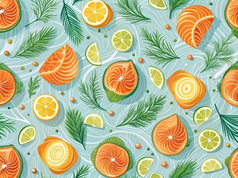 Process of cooking food from above. Ingredients for dishes and food. Chef. Kitchen. Culinary concept. Workshop. Master Class. Preparing food. Flat style. Meal. Making fish, soup, salad. Seafood. Diet