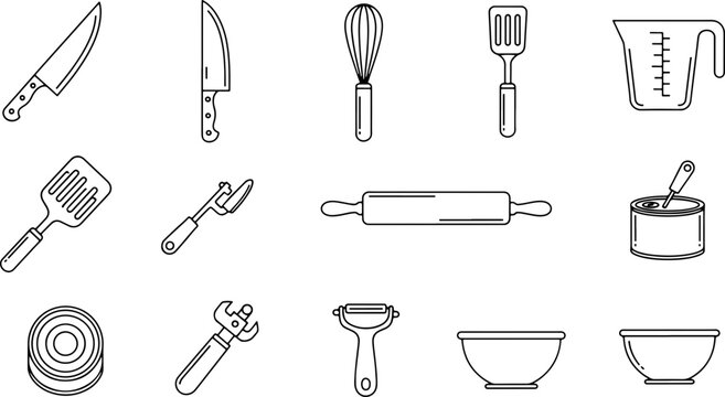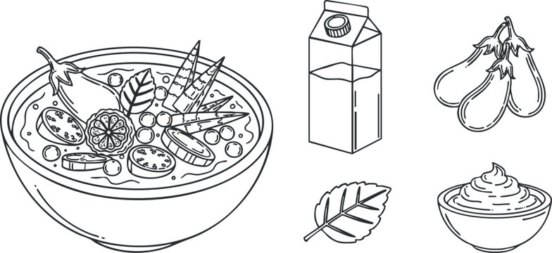 Nature and cooking outline icon set for eco-friendly culinary illustrations