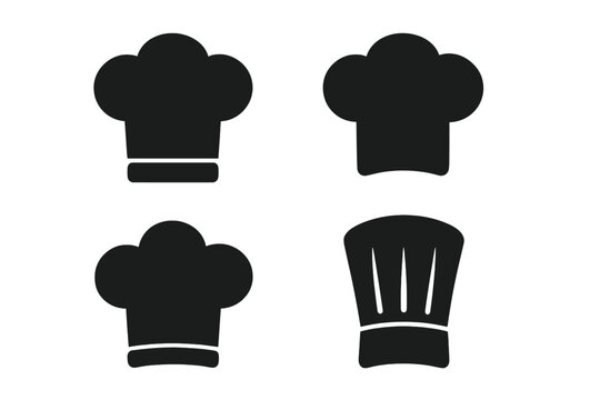 Chef hat silhouette icons set. Professional cooking symbols. Kitchen uniform vector designs. Culinary logo concepts. Food industry illustrations. Cook and baker hats isolated.