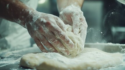 Chef expertly kneading fresh dough, creating culinary magic in motion