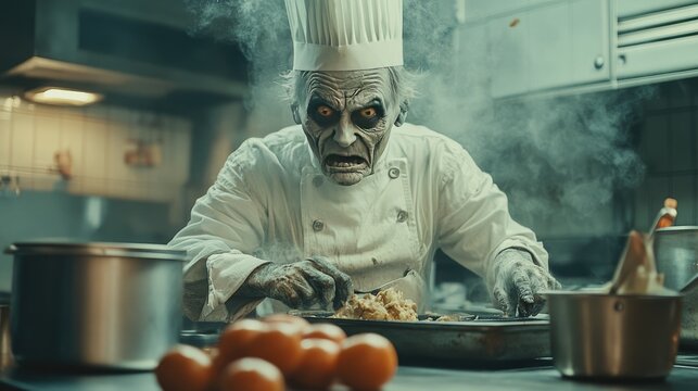 Chef creates culinary magic in a vibrant restaurant kitchen