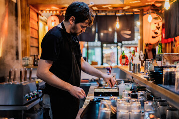 Culinary teamwork by chefs in kitchens and recipe preparation
