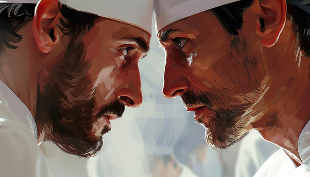 Two rival chefs competing in a high-stakes cooking competition, with love blossoming amidst the culinary chaos