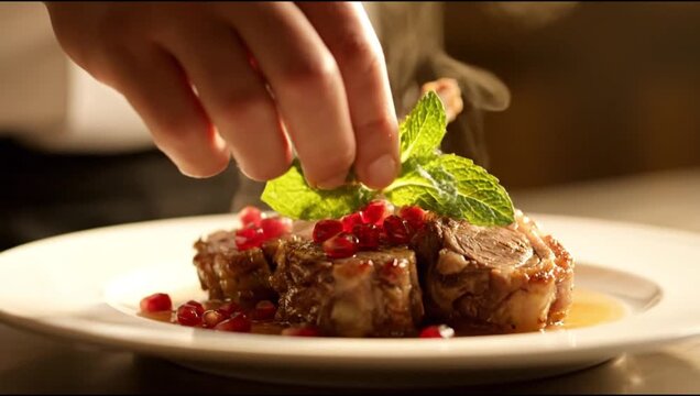 Chef perfecting dish for gourmet culinary experience advertisement