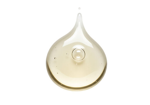 スキンケア用スポイトから美容液が滴る高品質なマクロ撮影。透明感のあるゴールデンカラーの美容オイルが光を反射し、美しい艶と質感を表現したミニマルな背景のビジュアル。/