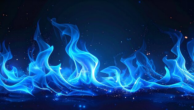 青い炎のような光が揺らめく壁紙背景が力強い光の流動感を示す構図