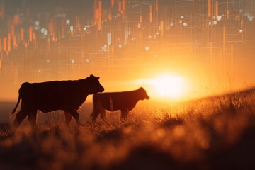 Sunset over pastures: calf silhouettes and health metrics overlay. Calf mortality rates. Clostridium perfringens: the invisible culprit behind calf deaths. Pasture challenges.
