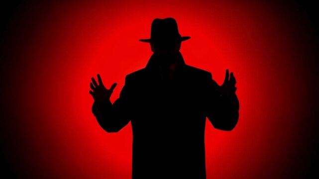 Portrait of a detective with a surprised expression on a suspenseful crime scene background