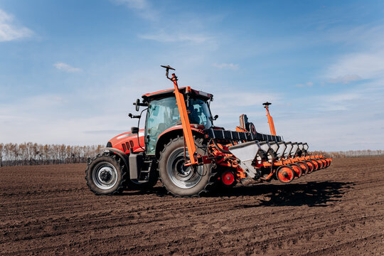 Agriculture. land cultivation. cultivator on a heavy tractor does pre-sowing soil cultivation
