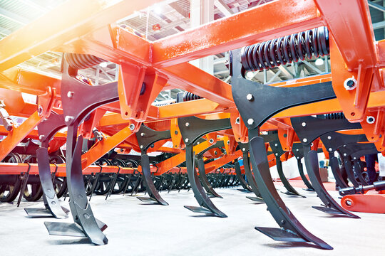 Nozzle cultivator on a small manual benzo walk-behind tractor close-up