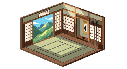 Charming Cartoon Couple in Traditional Attire with Crescent Moon Emblem