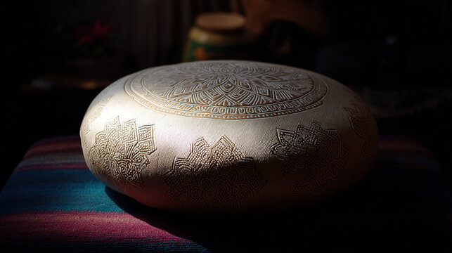 radial. Complex mandala pattern from colored sand, radial symmetry and vibrant colors. event programs, museum guides, designed for cultural heritage projects and event programs, supports education.
