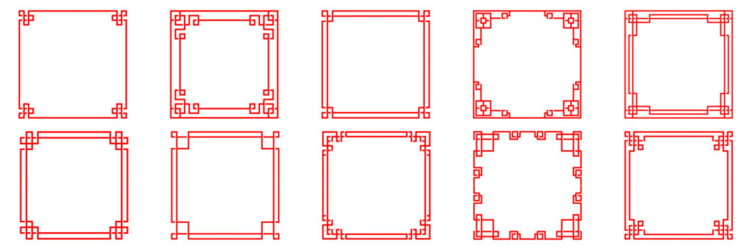 Traditional asian red borders with intricate floral and geometric patterns vector illustration