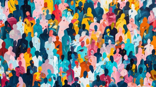Vibrant diversity: abstract art seamless pattern of colorful people crowd. Illustration celebrating multi-ethnic community and cultural diversity in modern collage painting