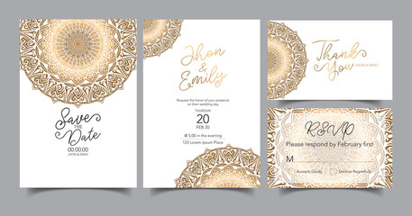 Luxury Hindu Wedding Invitation Card with Indian style and Vintage Ornament texture  Greeting card mock up for laser cutting  EPS10 Vector illustration.