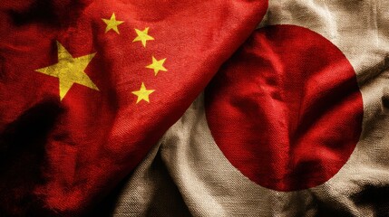 China and Japan flags intertwined, symbolizing relations and cultural exchange between two nations