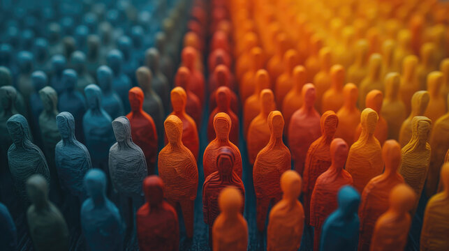 Large crowd of diverse people. paper cut out style