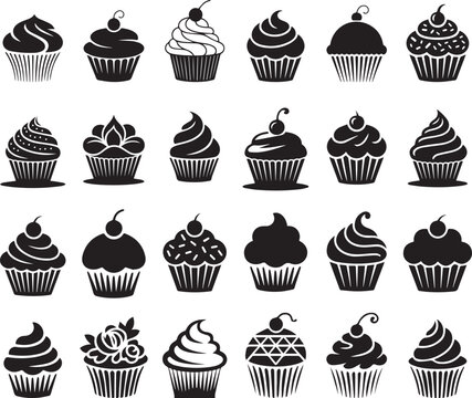 Cupcake black silhouette set flat vector illustration icon collections