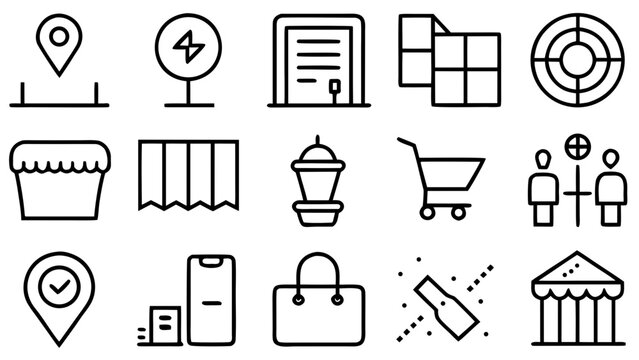 Illustration of assorted retail and commercial icons including location and shopping elements design
