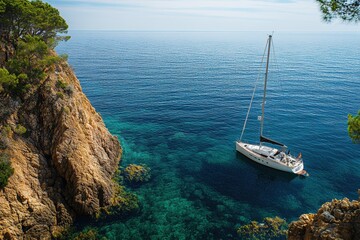 Serene Tropical Paradise - Large Acrylic Art Print of Exotic Landscape for Modern Wall Decor. Beautiful simple AI generated image
