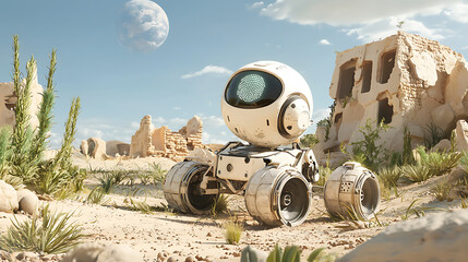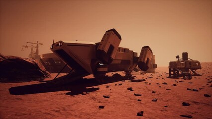 Rover on alien planet. Mars surface. Realistic 3d animation.