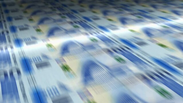 Azerbaijan Manat money sheet printing. AZN banknotes loop print. Seamless and looped background concept of finance, economy crisis, inflation and business.