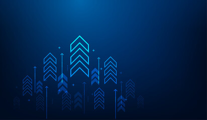 Growth Up arrows in blue futuristic style on dark technology background with glowing dots or stars
