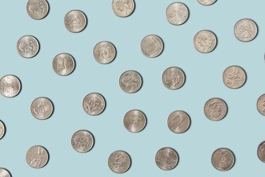 Cent coins laid out on blue background.