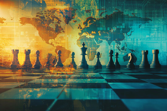 Global Trade Business Strategy Chess Background. A montage of an abstract world globe map and a chess board background