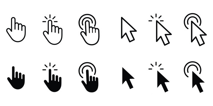 Set of Hand Cursor icons click and Cursor icons click. Isolated on White background.
