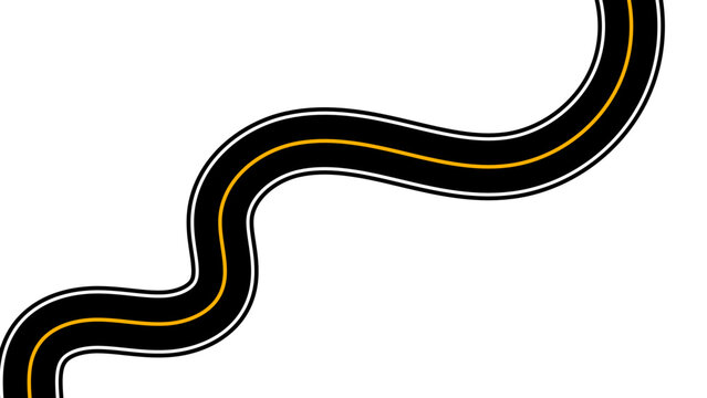 Winding road. Journey traffic curved highway. Background of the road to the horizon in perspective. Curvy asphalt empty line isolated. Vector winding road isolated on transparent back