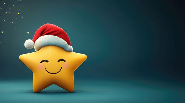 Cheerful star character donning a festive red Christmas hat, perfect for seasonal greeting cards and holiday banners, featuring ample space for custom text.