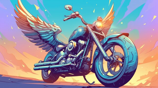 Rev up your design with this legendary retro motorcycle icon featuring classic chrome details and stylish wings in a cartoonish biker motoclub theme Custom moto vibes and the essence of free