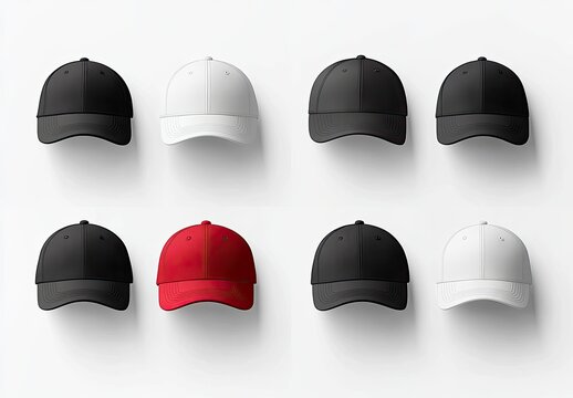 Blank baseball caps in various colors