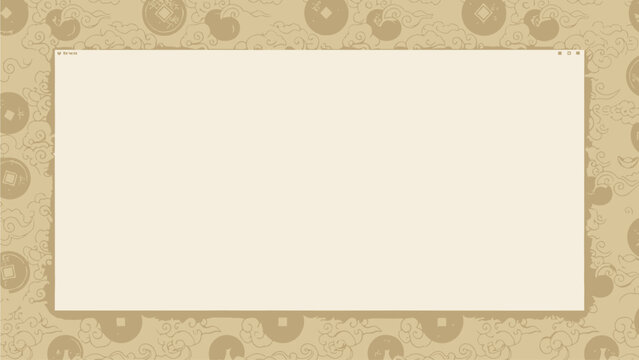 A blank rectangular card with a beige background and circular patterns surrounding it from a top-view perspective