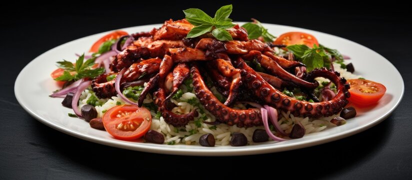 Mediterranean rice with octopus, a customary dish.