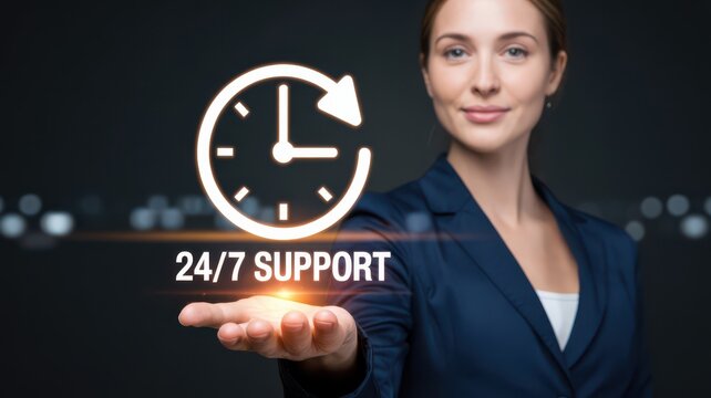 Customer service representative promoting 24-hour support