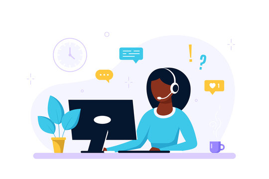 Customer service center staff and customer network. flat design style minimal vector illustration.